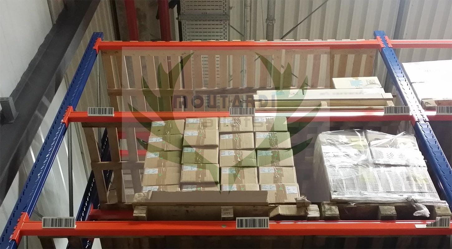 In some situations, the role of these wooden counters is also safety. Even if the loaded pallets on the shelf are long enough to stand on the two bars, forklift manoeuvres to place or lift pallets on or from the shelf may cause a loaded pallet to fall between the bars of the shelf, over a loaded pallet on the shelf below. In other situations, pallets stored on the two bars of the shelf bend under the weight of the goods and the role of the wooden counters is to prevent the pallets from bending. This avoids pallet deformation during storage on shelves or even their falling over pallets on the shelves below because, during storage, if a pallet bends excessively, there are very high chances it will fall between the two bars. Thus, the role of these wooden caps used as counters is also to strengthen the safety at work in production/storage halls.